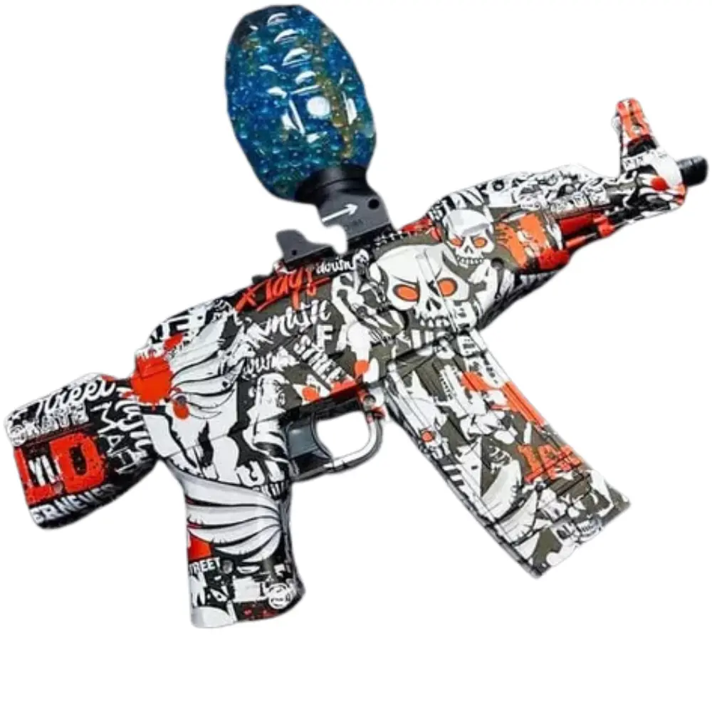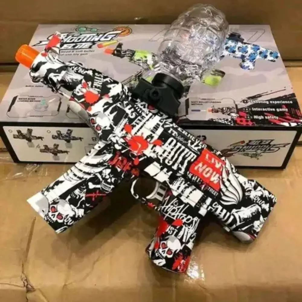 La ametralladora de gel es un juguete que lanza las frágiles bolas blandas de gel como un proyectil, por lo que cuando se propulsan, estallarán inmediatamente. Una vez seca, desaparecerán por completo.