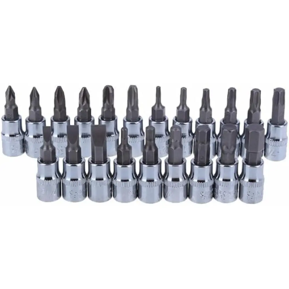 Incluye tamaños métrico y SAE con toma de transmisión de 1/4 ": incluye tamaños métrico y SAE con toma de 1/4", zócalo de 0.157 in a 0.551 in y juego de brocas para aplicaciones versátiles.